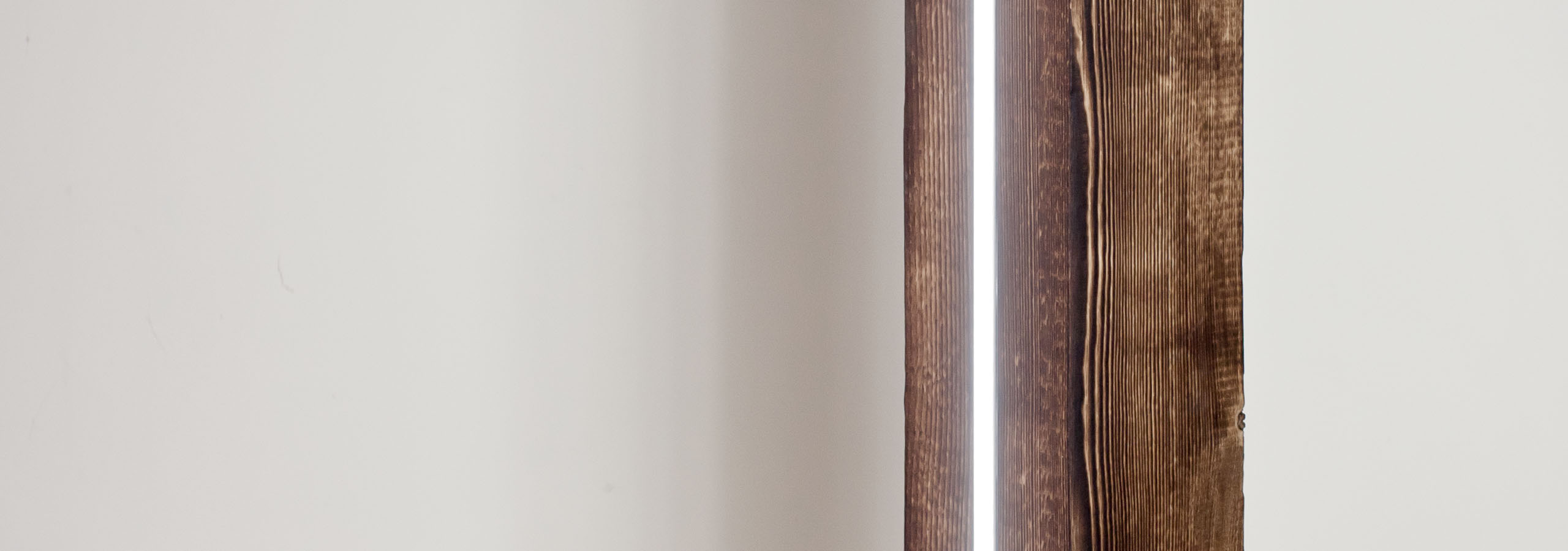 Legno massello di Abete bruciato e ferro grezzo con barra led.