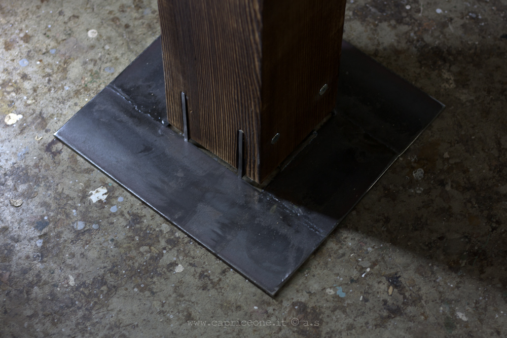 la base costituita da una piastra di ferro grezzo che si va an innestare solidamente nel trave.